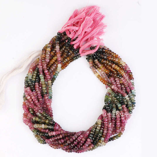 Multi Color Natural 3mm to 4mm Faceted Rondelle Tourmaline Jewelry Making 13 Inch Length Strand Gemstone Beads Wholesale