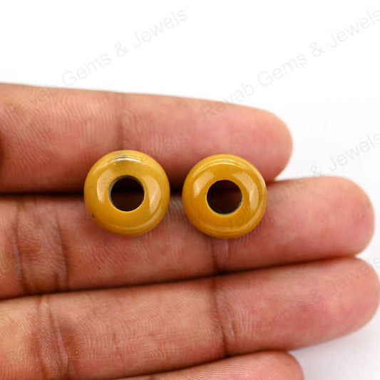 Natural Yellow Mookaite Jasper Rondelle Smooth 14x8x5mm Big Hole European Charm Gemstone Beads for Making Fine 18k Gold Jewelry