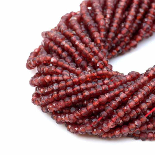 Top Quality Wholesale Natural 3mm to 4mm Garnet Faceted Rondelle Shape Gemstone Beads 13 Inches Length Strand for Making Jewelry