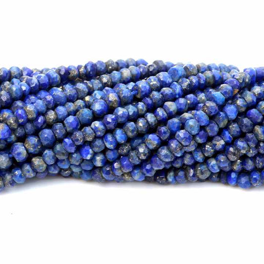 New Wholesaler Natural 3mm to 4mm Faceted Rondelle Shape Lapis Lazuli Gemstone Jewelry Making Handmade Gemstone Strand Beads