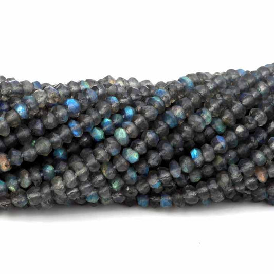 Top Quality Natural 3mm to 4mm Faceted Rondelle Blue Fire Labradorite Jewelry Making Gemstone Strand Beads at Factory Price