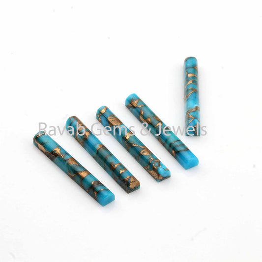 4x30mm Blue Copper Turquoise Long Rectangle Pencil Shape Gemstone, Calbrated Smooth Half Cylinder Cut For Jewelry Earring Making 2 Pcs Set