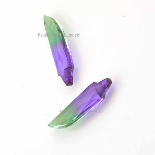 Multi-Color Tourmaline New Sword Shape Gemstone, Faceted Briolette Calibrated, Loose Beads Stone For Jewelry Earring Making - 2 Pcs Set
