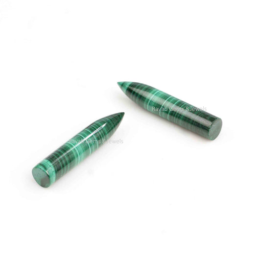 Natural Malachite Long Bullet Shape Gemstone For Jewelry, Loose Beads Calibrated Stone For Matching Jewelry Making 2 Pcs Set All Size 6x30mm