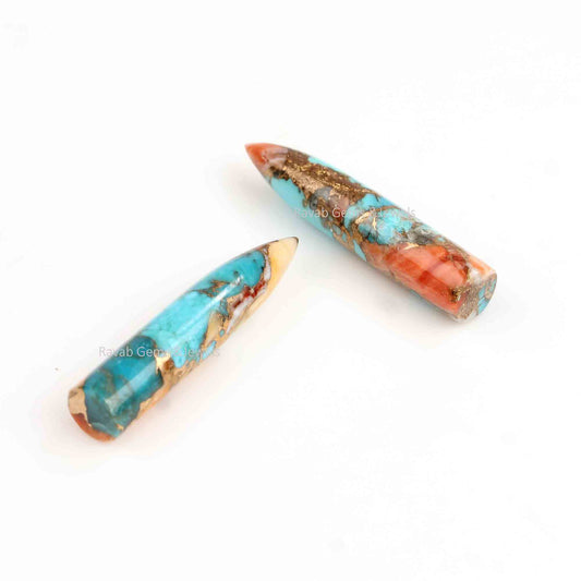 Spiny Oyster Copper Turquoise Long Smooth Bullet Shape Gemstone For Jewelry, Loose Beads Calibrated Stone For Matching Earring 6x30mm 2 Pcs