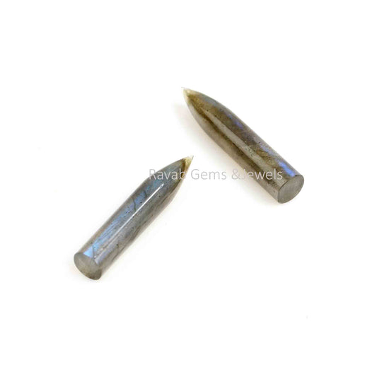 2 Pcs Blue Flashy Labradorite, Elongated Pyramid Pencil, 6x30mm Calibrated Smooth, Loose Gemstone, For Jewelry Making, All Sizes Available