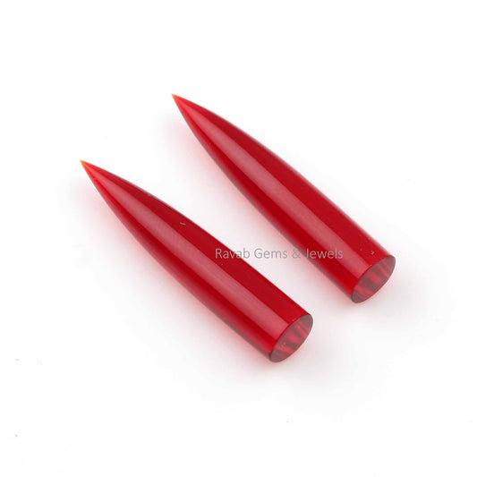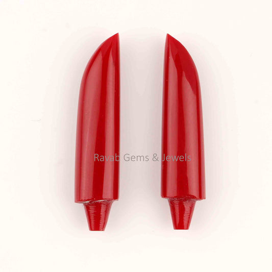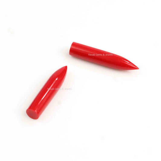 6x30mm Red Coral Long Smooth Bullet Shape Gemstone For Jewelry, Loose Beads Calibrated Stone For Fancy Jewelry Earring Making 2 Pcs