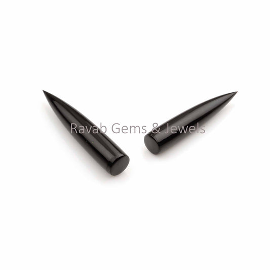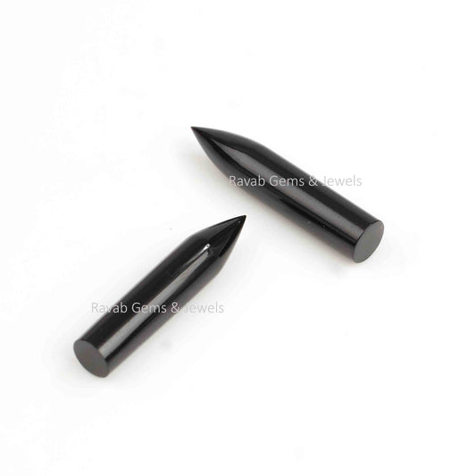 Natural Black Onyx Long Smooth Bullet Shape Gemstone For Jewelry, Loose Beads Calibrated Stones For Matching Jewelry Making 2 Pcs Set 6x30mm