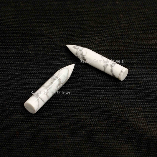 Natural White Howlite Long Smooth Bullet Shape Gemstone For Jewelry, Loose Beads Calibrated Stone For Earrings 6x30mm 2 Pcs Set All Sizes