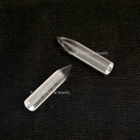 2 Pc Natural Crystal Clear Quartz, 6x30mm Single Pointed, Pencil Shape Gemstone, Calibrated Smooth, Loose Gemstone, For Making Earring Pairs