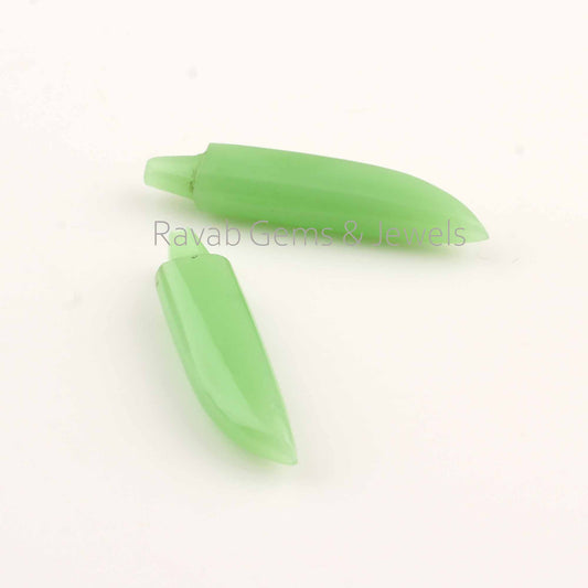 7x30mm Chrysoprase Chalcedony Gemstone New Sword Shape Gemstone, Smooth Briolette Stone For Jewelry Earring Pendant Making - 2 Pcs Set