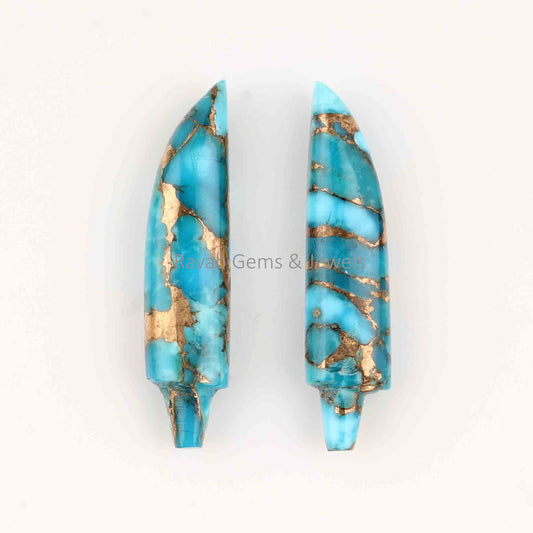 7x30mm Blue Copper Turquoise Long Sword Shape Gemstone, Smooth Briolette Calibrated Stones, Composite Stone For Earring Pendant - 2 Pcs