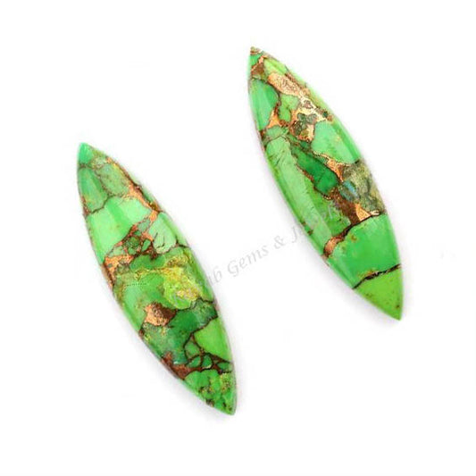 Green Copper Turquoise Long Marquise 10x35mm Gemstone Calibrated Cabochon, Green Copper Turquoise cabochon for Jewelry making 2 pcs set