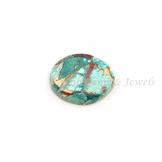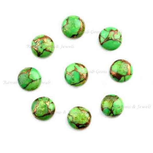 Green Copper Turquoise Round Shape Smooth Calibrated Cabochons Gemstone, Loose Beads Semi Precious Stone For Jewelry Earrings 2 Pcs