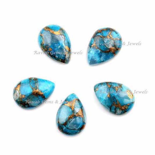 Blue Copper Turquoise Pear Shape Smooth Cabochons Gemstone | Loose Beads Calibrated Stones For Jewelry Earring Making 5 Pcs Set