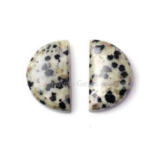 Dalmatian Jasper Half-Moon D Shape Gemstone Cabochons, Smooth Calibrated Loose Beads Stone For Matching Earring Making 2 Pcs Set