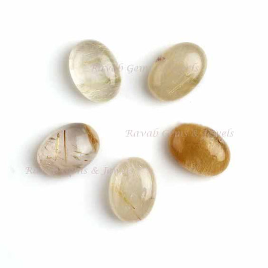 Golden Rutile Oval Shape Smooth Cabochons Gemstone For Jewelry, Loose Beads Calibrated Stones 5 Pcs Set All Sizes Available