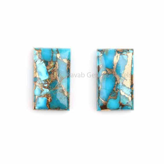 Blue Copper Turquoise Rectangle Gemstone Calibrated Cabochons, Semi Precious Stone For Jewelry Making Best Quality Stones 2 Pcs Set, 12x20mm