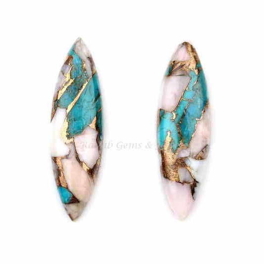 Elegant Marquise Shape Pink Opal Copper Turquoise Cabochons Gemstone, Calibrated Loose Beads Stone For Jewelry 2 Pcs Gift For Her