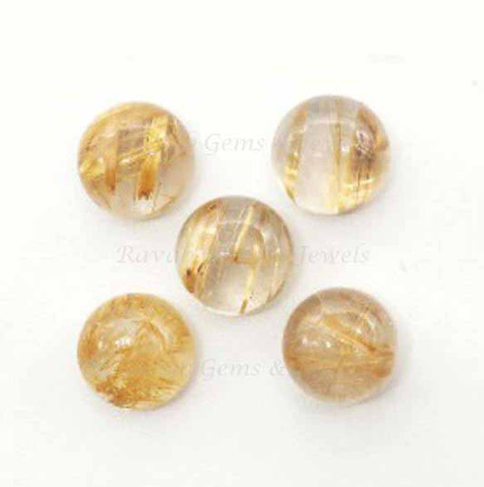 Golden Rutile Quartz, Round Shape Cabochons, Calibrated Smooth, Loose Gemstone, Rutilated Quartz, Supplies For Jewelry Making 5 Pc, 8mm-16mm