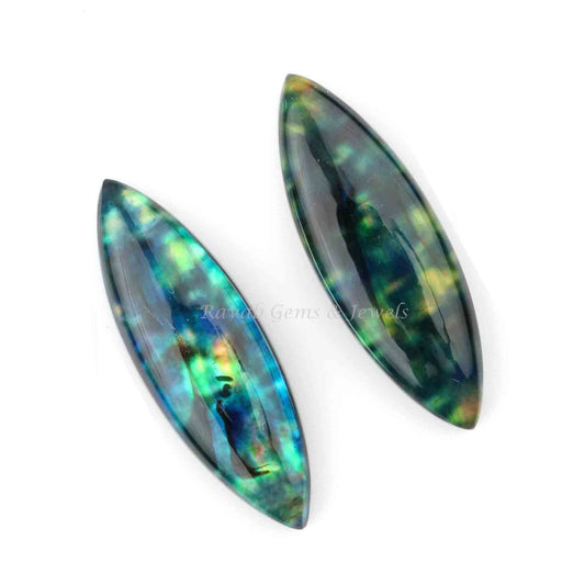 Green Ammolite Quartz Marquise Smooth Cabochons Gemstone, Loose Beads Calibrated Stone For Fancy Jewelry Earring Making 2 Pcs Set 8x25mm
