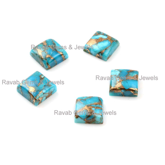 Blue Copper Turquoise, Square, Calibrated Cabochons, Loose Gemstone, Semi Precious Stone, For Jewelry Earring Making 8mm-16mm 5 Pc
