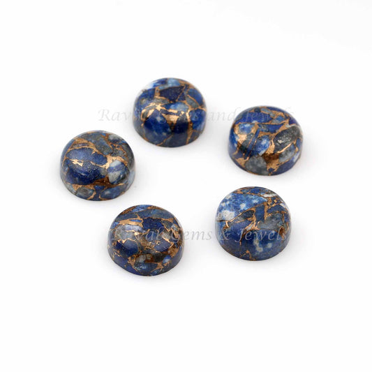 Copper Lapis Lazuli Round Shape Calibrated Cabochons Gemstone | Loose Beads Stones For Matching Jewelry Making 6mm-18mm 2 Pcs