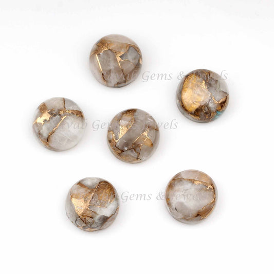 Ethnic White Calcite Copper Round Shape Cabochon Gemstone- Smooth Calibrated Loose Gemstone For Jewelry Making- 5 Pcs Set 10mm