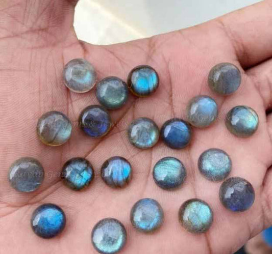 Calibrated Natural Blue Flashy Labradorite 12mm Stone, Round Shape Gemstone Cabochons, Smooth Stone, For Jewelry, 5 Pcs Set DIY