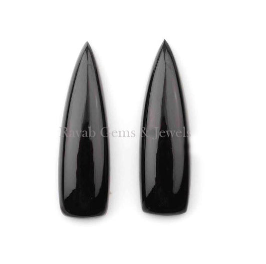 Natural Black Onyx Long Trillion Shape 10x28mm Cabochons Gemstone For Jewelry, Loose Beads Calibrated Stone 2 Pcs Set Available