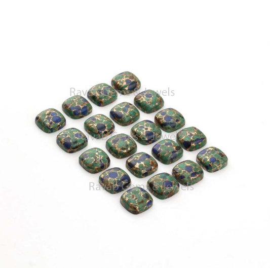 Natural Azurite Copper Cushion Loose Gemstone - Cabochon 10mm - 2 pcs Set for Jewelry Making - Calibrated Semi-Precious Stone