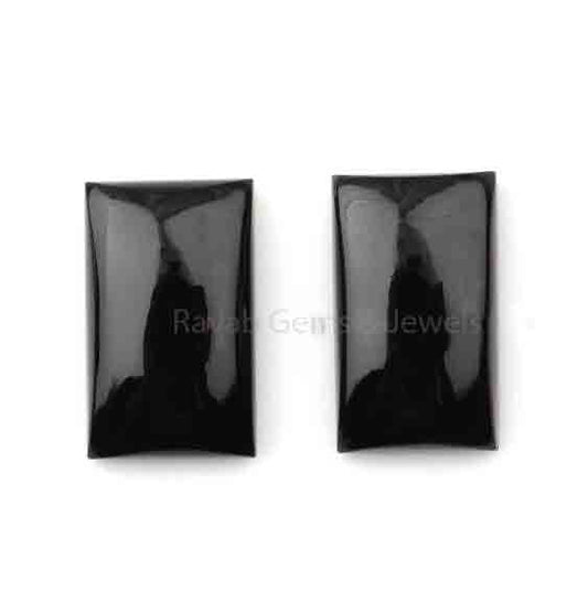 Natural Black Onyx Long Rectangle Cabochons Gemstone, Loose Beads Calibrated Stone For Matching Jewelry Making 2 Pcs Set 12x20mm