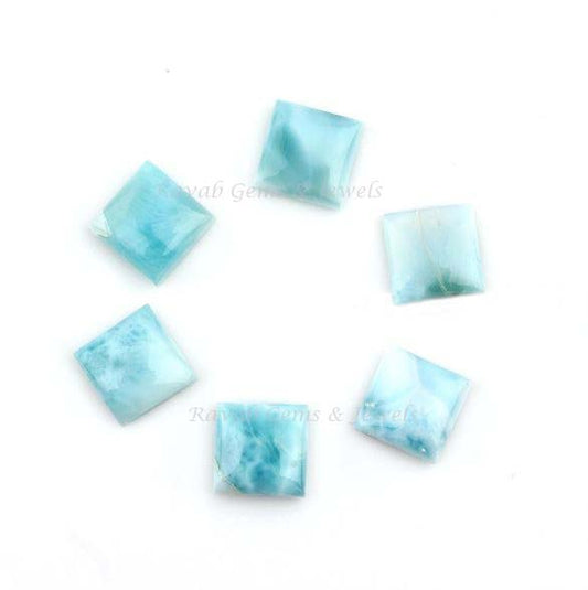 Natural Sky Blue Larimar Square Shape Gemstone, Smooth Calibrated Cabochons Stone For Jewelry, Jewelry Making Stone For Sale 8mm 5 Pcs Set