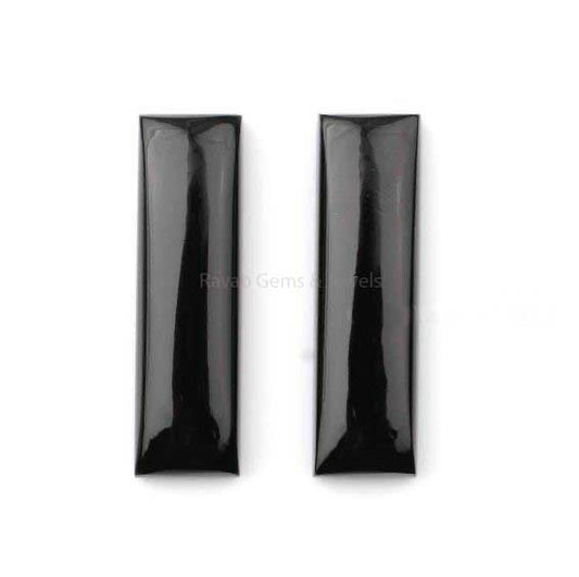Natural Black Onyx Long Rectangle Shape Gemstone, Loose Beads Smooth Calibrated Cabochons Stone For Jewelry 2 Pcs Set 10x35mm