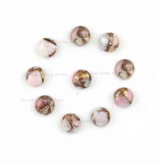 Natural Pink Opal Copper Round Smooth Gemstone, Loose Beads Calibrated Cabochons For Jewelry Making 2 Pcs All Sizes Available