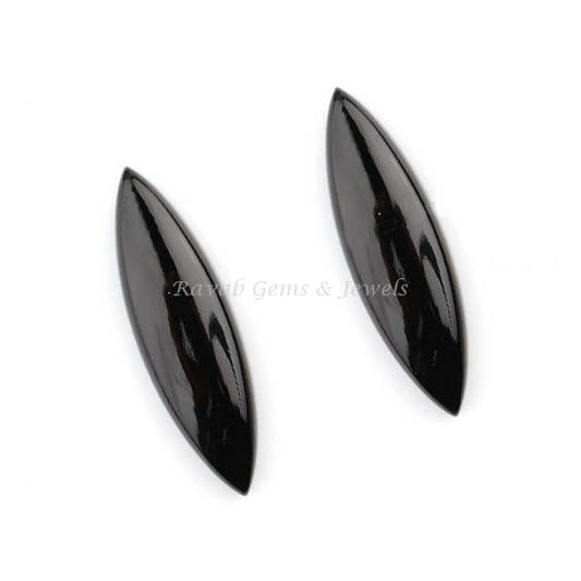 Natural Black Onyx Marquise Smooth Gemstone, Loose Beads Calibrated Cabochons Semi Precious Earring Pair Stone 2 Pc Set 8x25mm