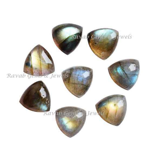 Natural Flashy Labradorite Trillion Shape, Cabochon, Loose Gemstone, Calibrated Smooth Semi Precious Stone For Jewelry Making 5 Pc