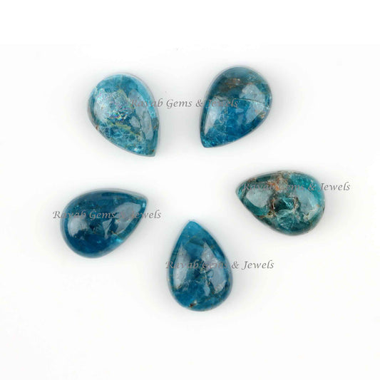 Natural Blue Apatite Pear Shape Smooth Cabochon Gemstone For Jewelry Making, Loose Beads Calibrated Stone For Jewelry Making 5 Pc