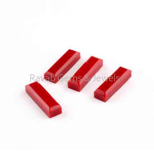 7x24mm Red Coral Gemstone Step-Cut Rectangle Shape Cabochon For Jewelry, Pendant, Earrings Making Gemstone 2 Pcs Set- All Sizes Available
