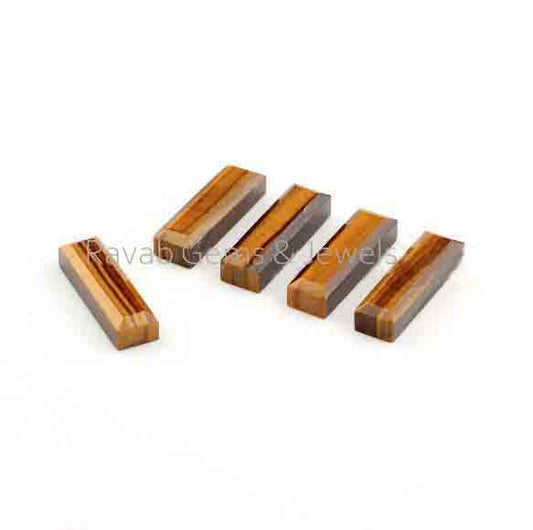 7x24mm Natural Tiger's Eye Step-Cut Rectangle Shape Smooth Cabochon Gemstone For Jewelry, Loose Beads Stones For Jewelry Making 2 Pcs Set