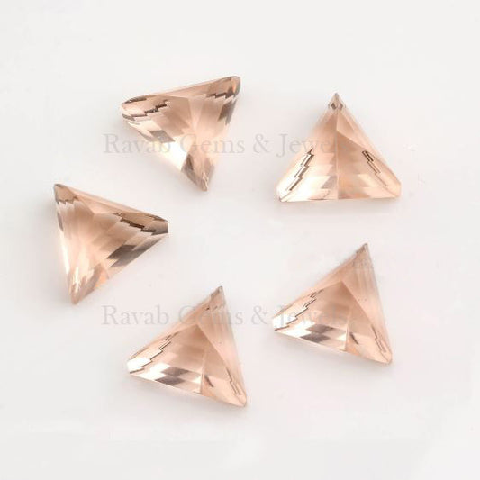 Morganite Quartz Triangle Shape, Pyramid Step Cut Gemstone, Calibrated Shinning Stone For Lovely Ones, Earring Making Stone 2 Pcs Set