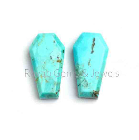 12x22mm Arizona Turquoise Fancy Coffin Shape Smooth Cabochons Gemstone For Jewelry Making, Loose Beads Calibrated Stone For Jewelry 2 Pcs