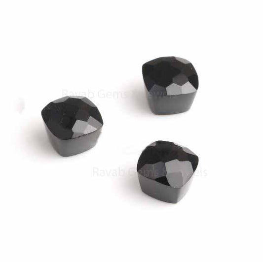 Natural Black Onyx Triangle Shape Flat Back Special Pyramid Step Cut Faceted Cabochon Gemstone, Loose Beads Gemstone For Jewelry 5 Pcs Set
