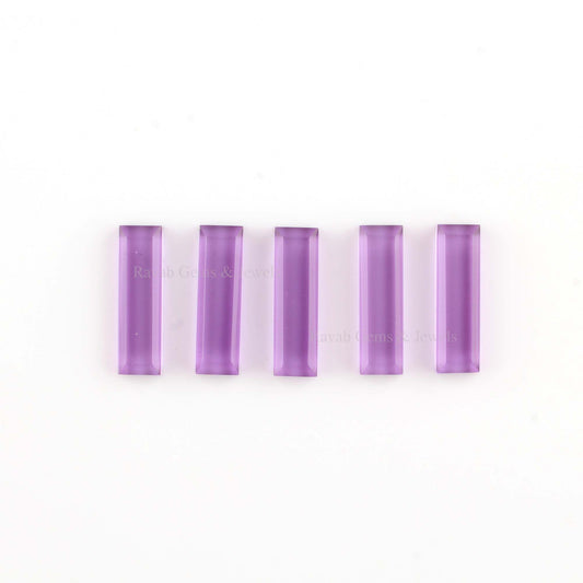 Amethyst Quartz Step-Cut Rectangle Shape 7x24mm Cabochon Gemstone, Calibrated Loose Beads For Jewelry Making 2 Pcs Set- All Sizes Available