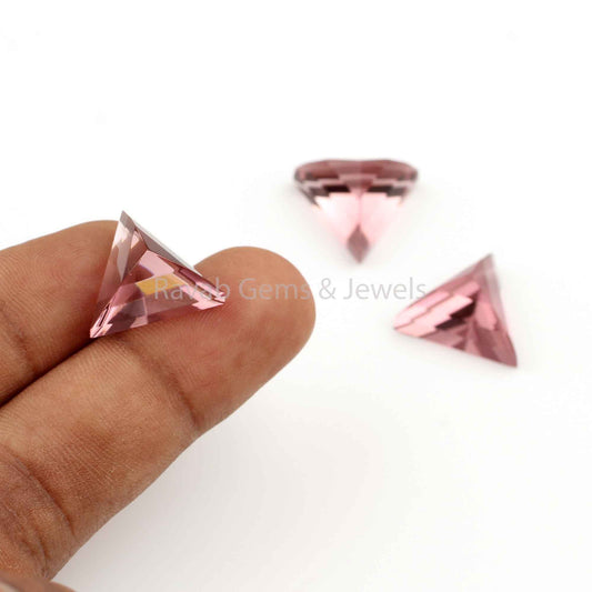 Pink Morganite Quartz Triangle Shape Pyramid Step Cut Faceted Gemstone For Jewelry Making, Loose Beads Stone For Ring Earring Making 2 Pcs