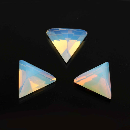 Fiery Opalite Triangle Shape Pyramid Step Cut Gemstone, Smooth Calibrated Stone For Jewelry Ring Earring Making 2 Pcs Set For Bridesmaid