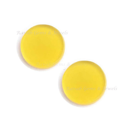 Yellow Chalcedony Round Coin Shape Flat Gemstone, Loose Beads Calibrated Stone For Matching Earring 2 Pcs Set For Jewelry Set Making