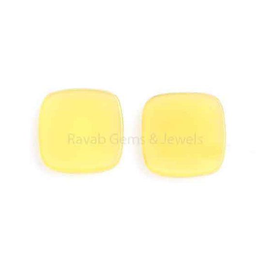 Yellow Chalcedony Cushion Shape Smooth Flat Gemstone, Calibrated Loose Beads Semi Precious Stone For Jewelry Earring Making 2 Pcs Set
