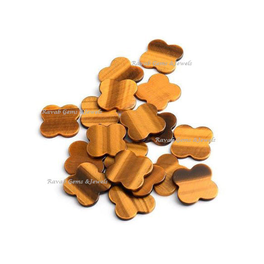 Tiger Eye Yellow, Clover Both Side Flat, Loose Gemstone, Four Leaf Wholesale Supplier, Semi Precious Stone, For Jewelry, All Sizes Available