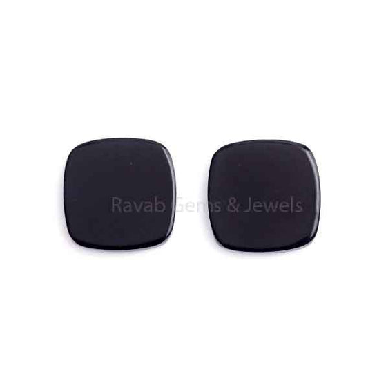 Black Onyx Cushion Shape Smooth Flat Gemstone For Jewelry Making, Calibrated Loose Beads Stone For Matching Jewelry Making 2 Pcs Set